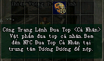 | Đua top cá nhân 15 ngày Tống kim 1 trận đạt 15k điểm nhận 1 lb công trạng đua top cá nhân Tiêu diệt boss sát thủ nhận 1 lb công trạng đua top cá nhân Viêm đế tiêu diệt lương mị nhi nhận 1 lb công trạng đua top cá nhân Tiêu diệt boss sát thủ nhận 1 lb công trạng đua top cá nhân Thời gian nhân nv boss sát thủ 0h đến 1h 7h đến 9h 16h đến 17h 18h đến 19h |
