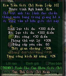 sinh lực + 300 Nội công + 30 điểm Phòng thủ vật lí 30% |